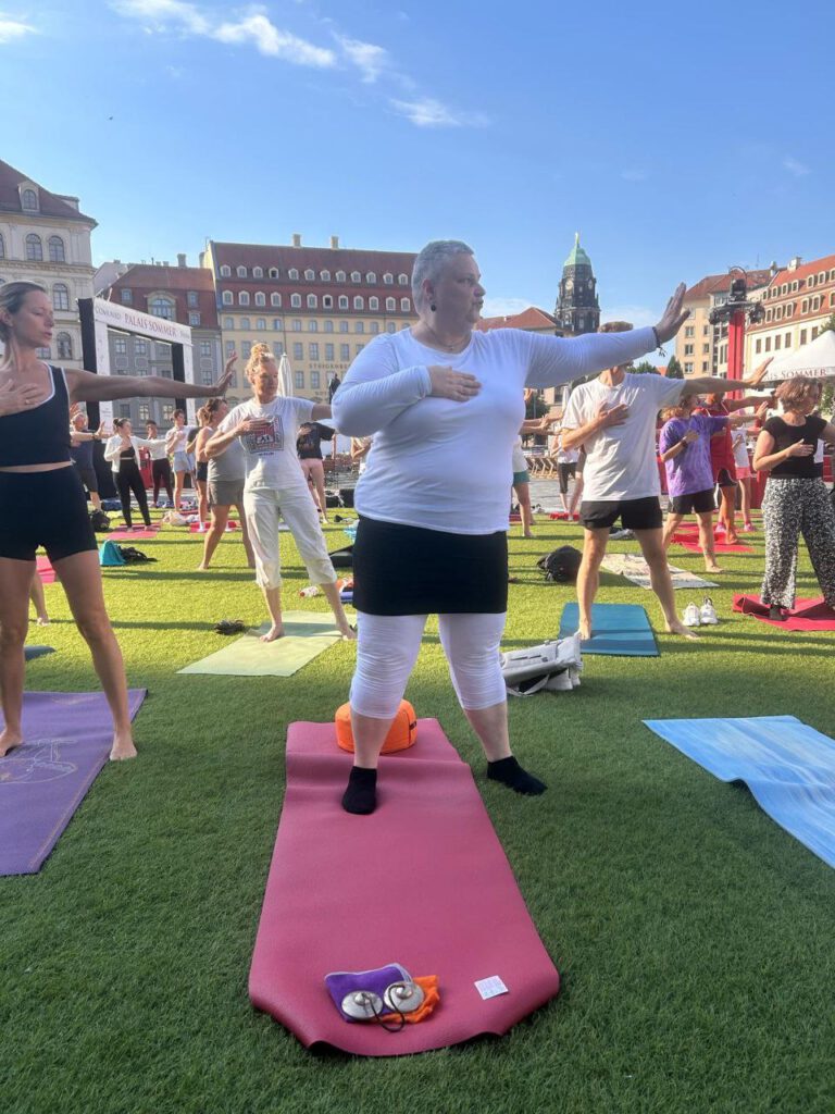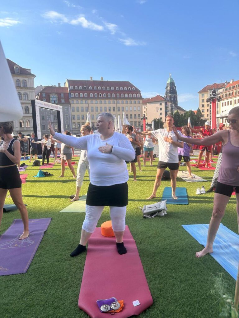 Gemeinsam mit Iris haben wir insgesamt viermal am Morgen an dem wunderschönen Platz im Herzen von Dresden -direkt vor der Frauenkirche die Herzchakra Meditation von Karunesh praktizieren dürfen.